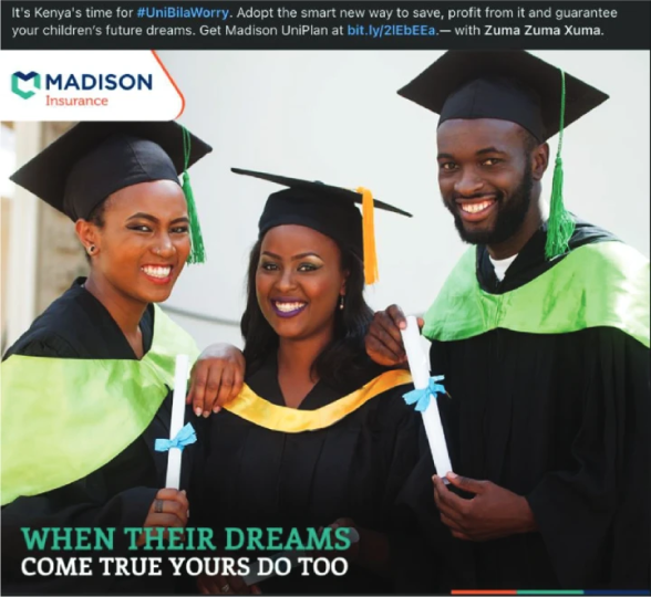 With rising university costs in Kenya, many families struggle to plan for their children’s education. Madison Insurance launched the Uniplan policy to help parents save for university.